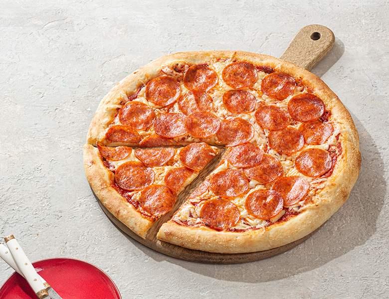Пепперони (с салями, 30 см), Фьюжн (с курицей, 30 см), Римская (с колбасой полукопченой, 30 см), Маргарита (30 см), Гавайская (с ветчиной, 30 см)